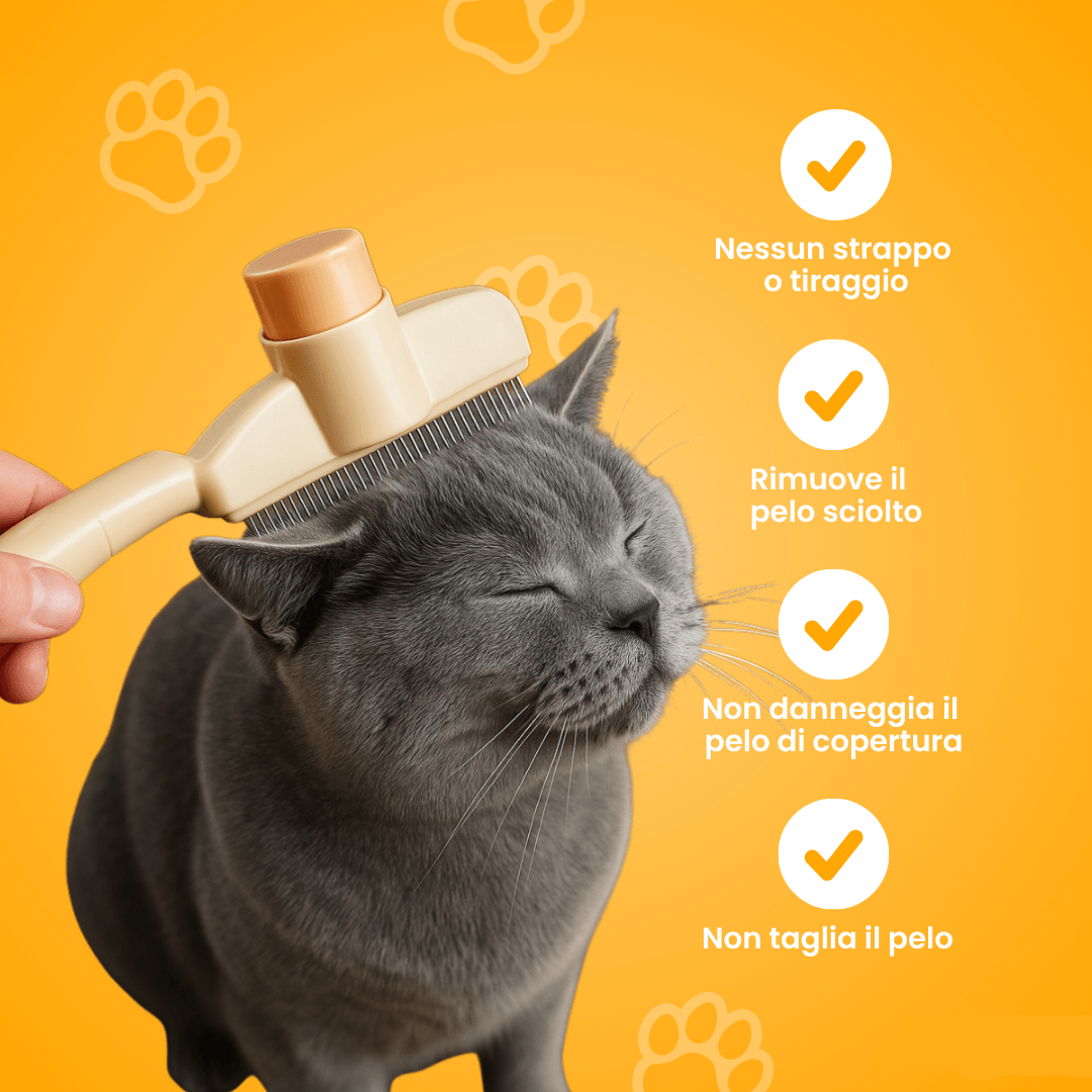 Elimina il pelo morto e in eccesso senza danneggiare o tagliare il pelo sano.